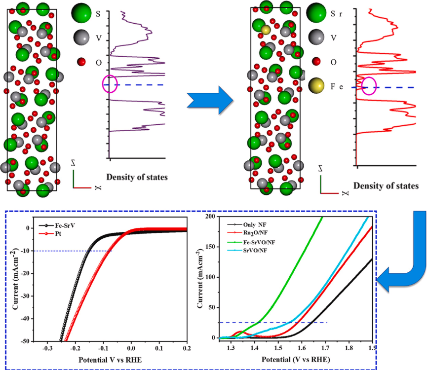 "Fe-incorporated 2-dimensional SrVO electrocatalysts for highly efficient overall water splitting: A synergistic approach to OER and HER enhancement"